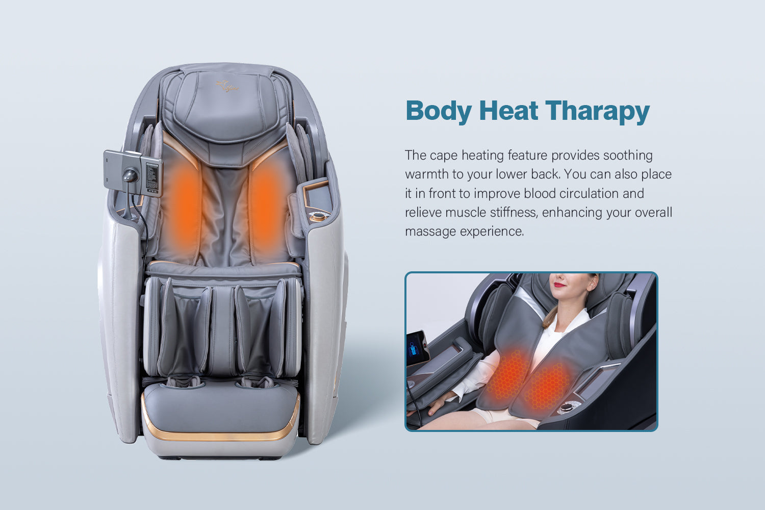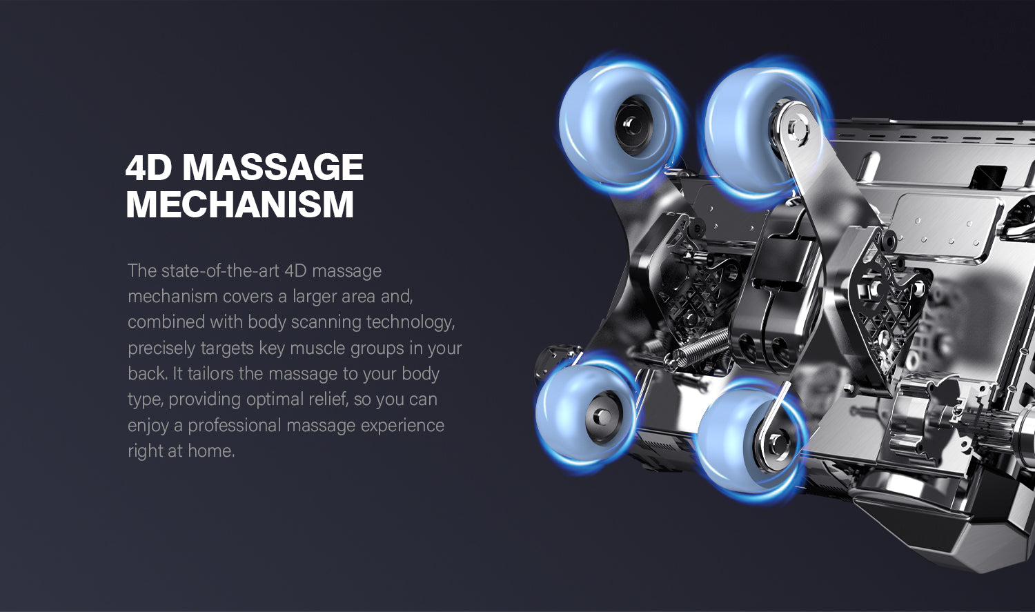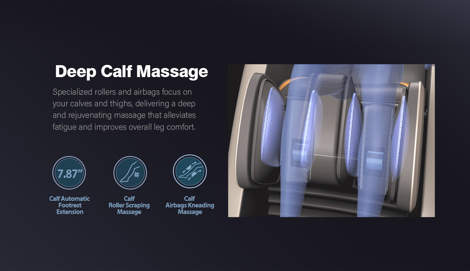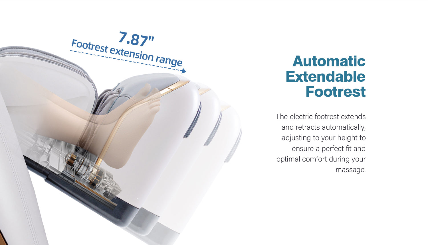 Advanced 4D Massage Mechanism Over the Air (OTA) Wifi Software Update Health Detection APP Control SL Long Track Massage from Neck to Hamstring area Program Customization & Recall Calf & Foot Roller Massage Automatic Footrest Extension Calf Airbag Kneading Massage Real Full Body & Zero Gravity Massage Touch Screen Remote & Quick Access Buttons Voice Command Control Wireless Charging Bluetooth